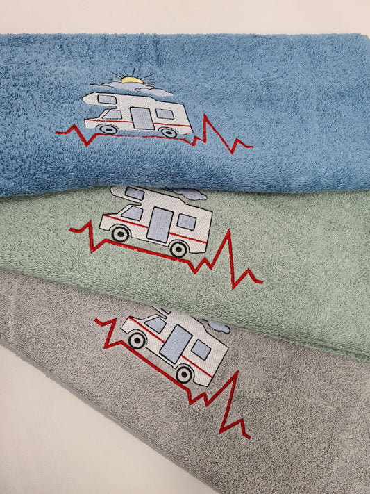 Badetuch 100x150 cm mit Herzschlag Caravan/Wohnmobil Stickerei