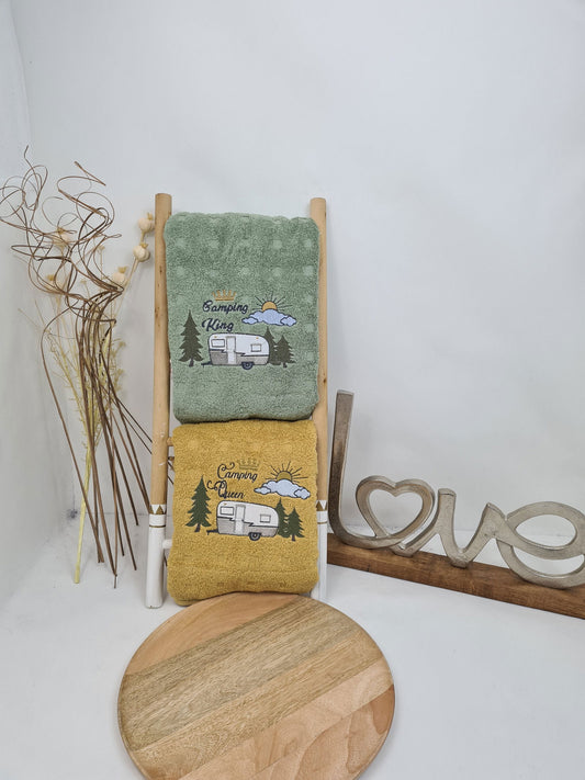 Besticktes Handtuch für Camping-Freunde "Camping King"