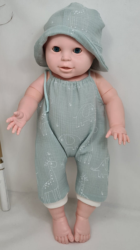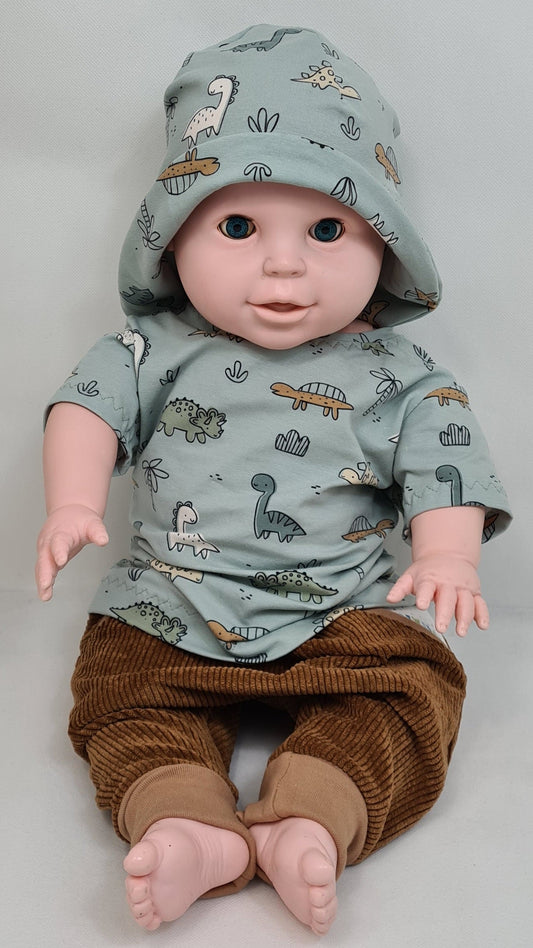 Sonnenhut mit Dino-Print in Altgrün und Nackenschutz