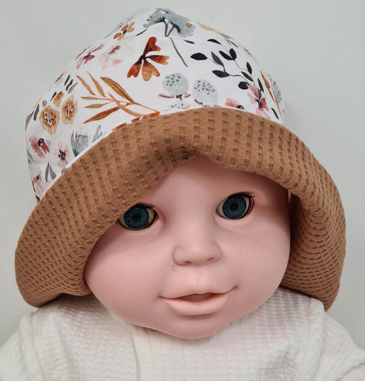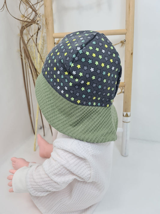 Sonnenhut, fröhlich hell gemustert mit Nackenschutz