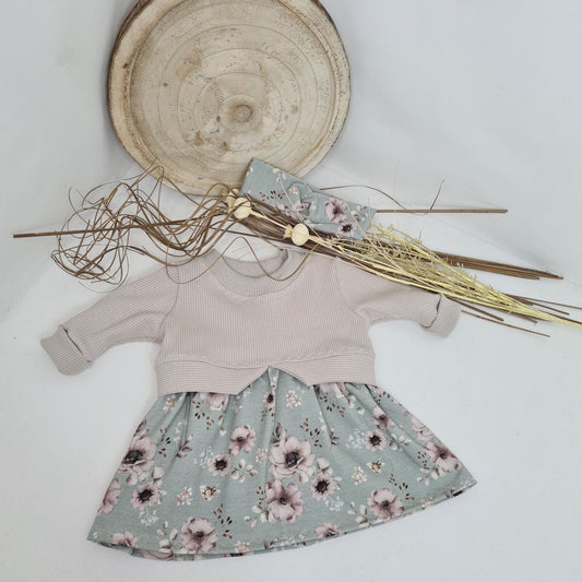 Beanie und Loop – Zartes Rosa mit weißen Blumen