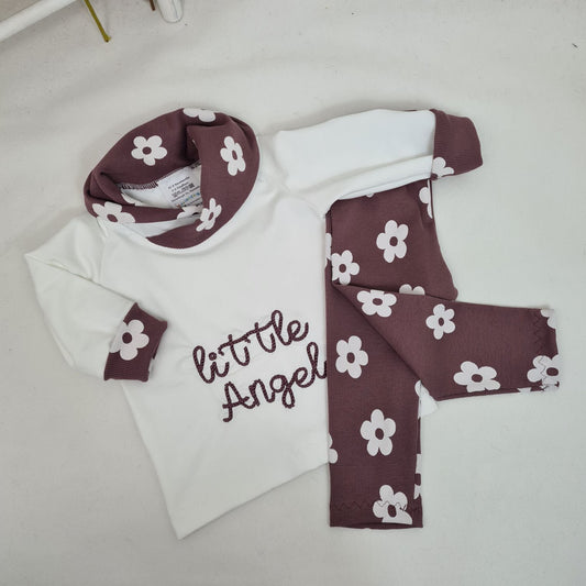 Leggings aus Rippjersey in Mauve mit weißen Blumen