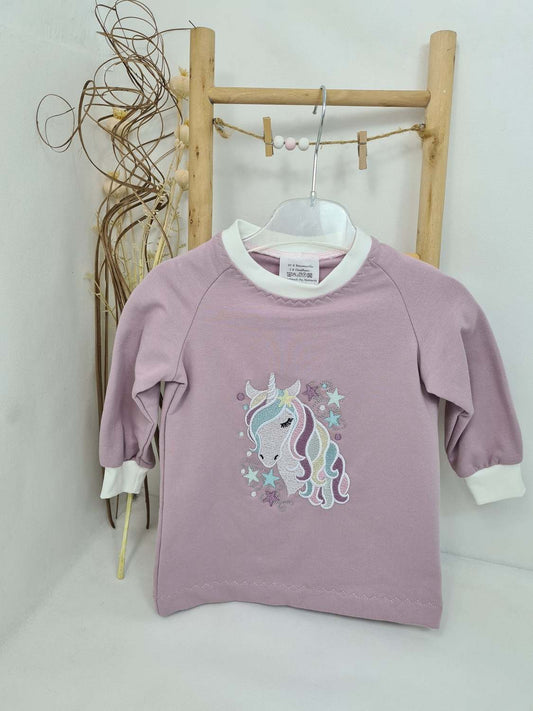 Sweatshirt in hellaltrosa mit Einhorn-Stickerei