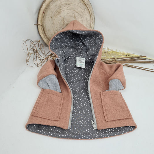 Wollwalkjacke / Cape mit Hasenohren – altrosa (reduziert wegen Farbabweichung)