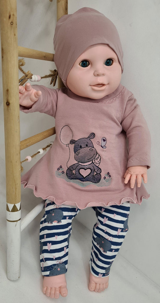 Tunika Rosa mit Nilpferd-Stickerei
