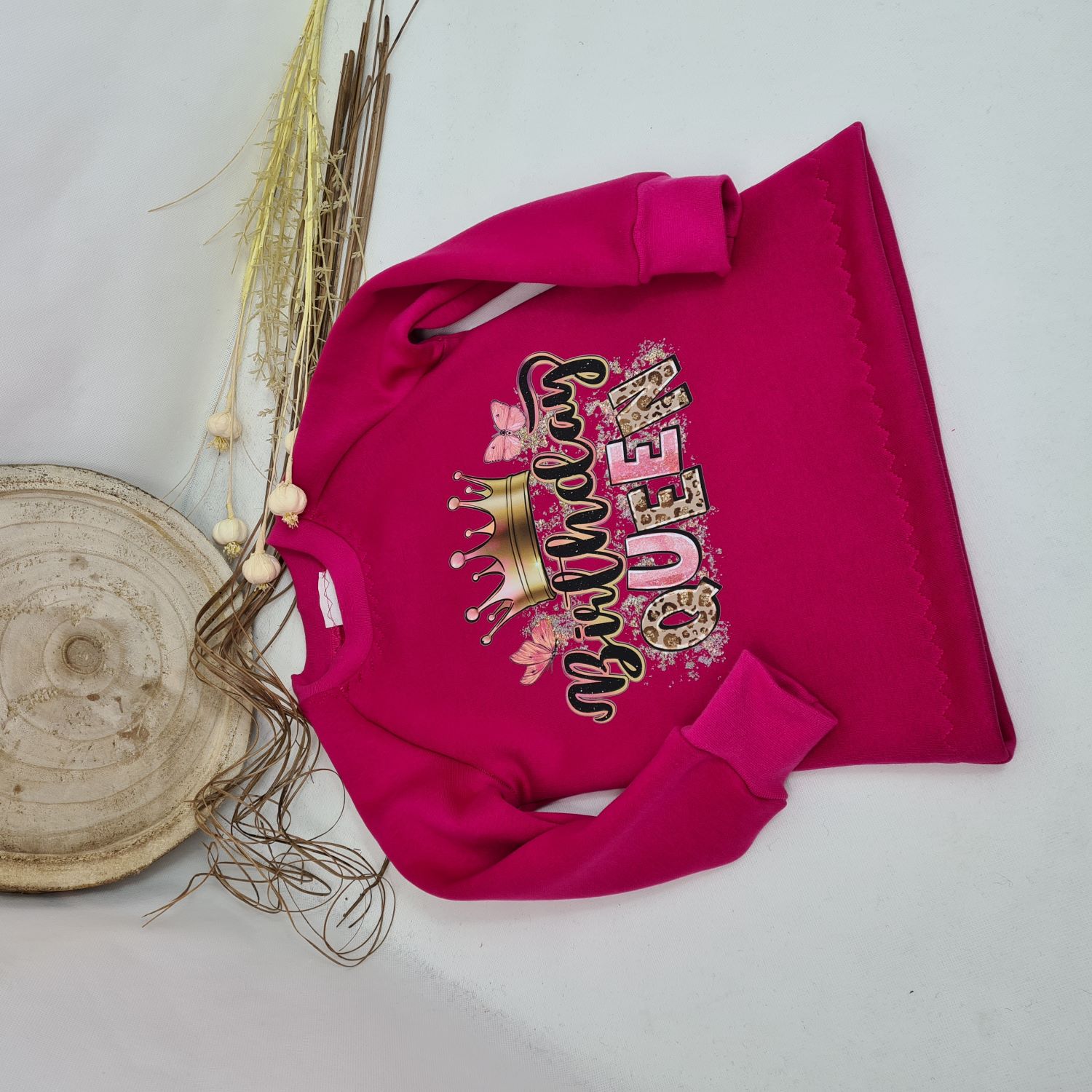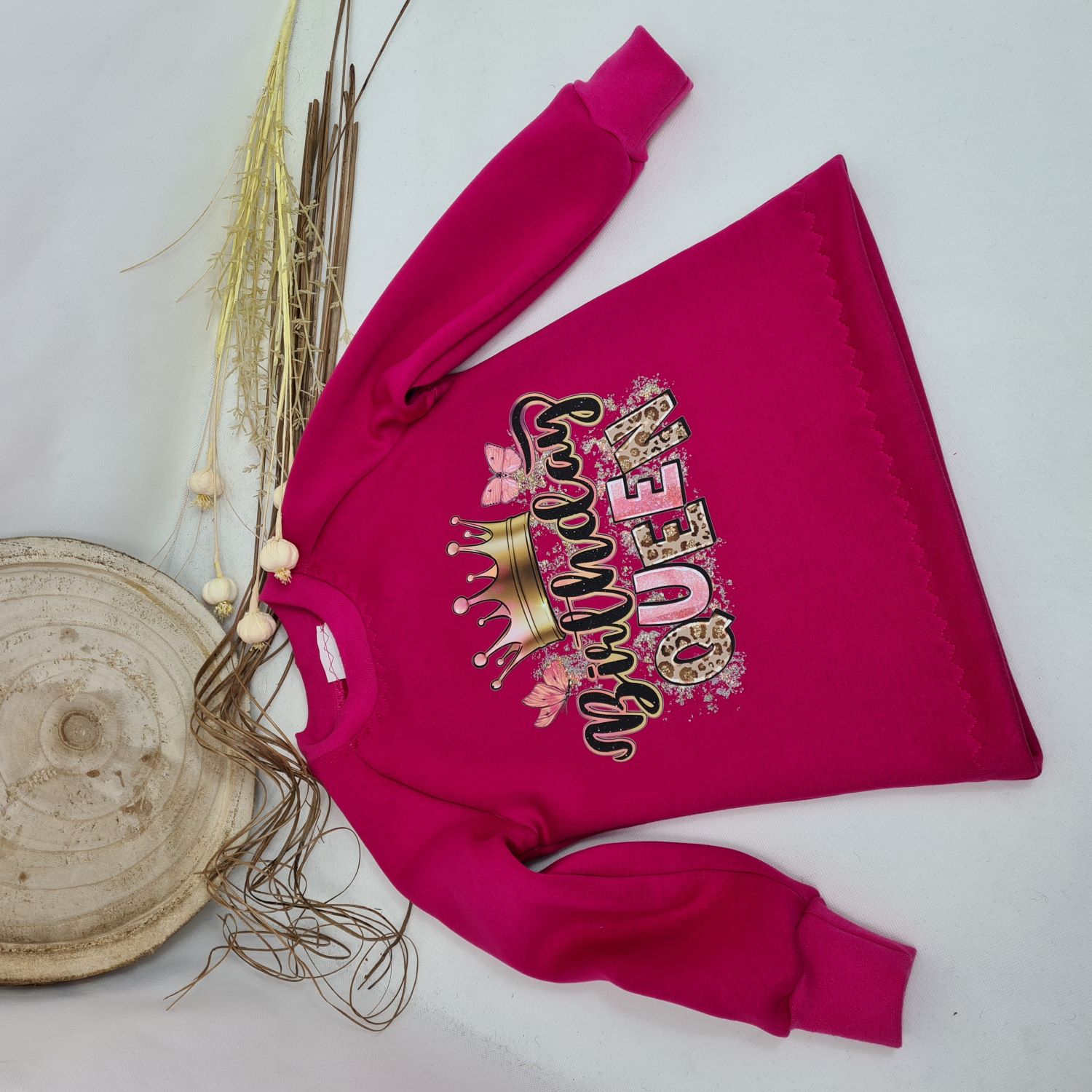 Dieses kuschelig warme Sweatshirt in strahlendem Pink macht jedes Geburtstagskind zum Highlight des Tages! Der große, auffällige „Birthday Queen“-Schriftzug mit Krone sorgt für einen besonderen Geburtstags-Look.