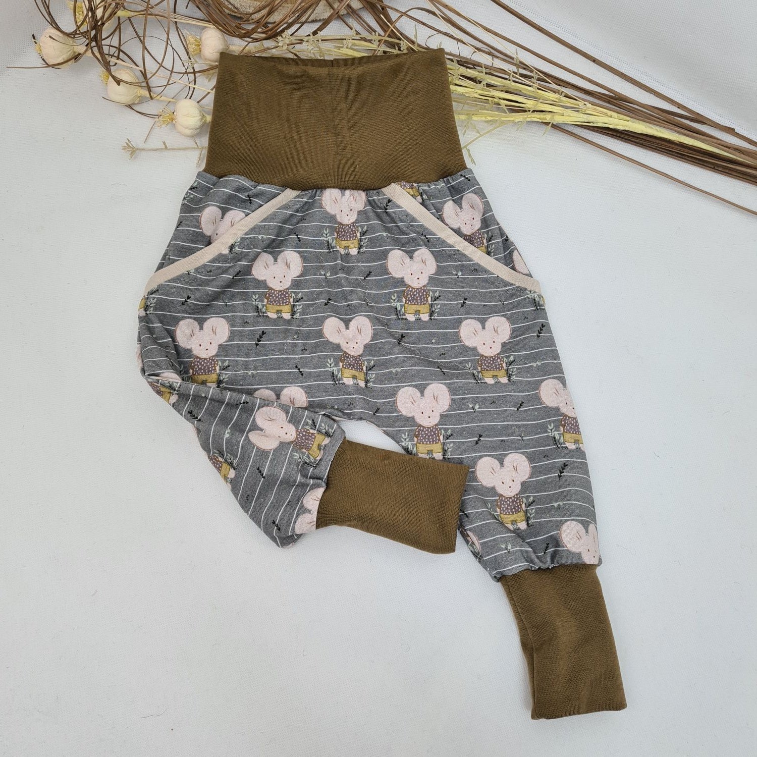 Pumphose „Maus mit Riesenohren“ – Grau mit feinen Streifen