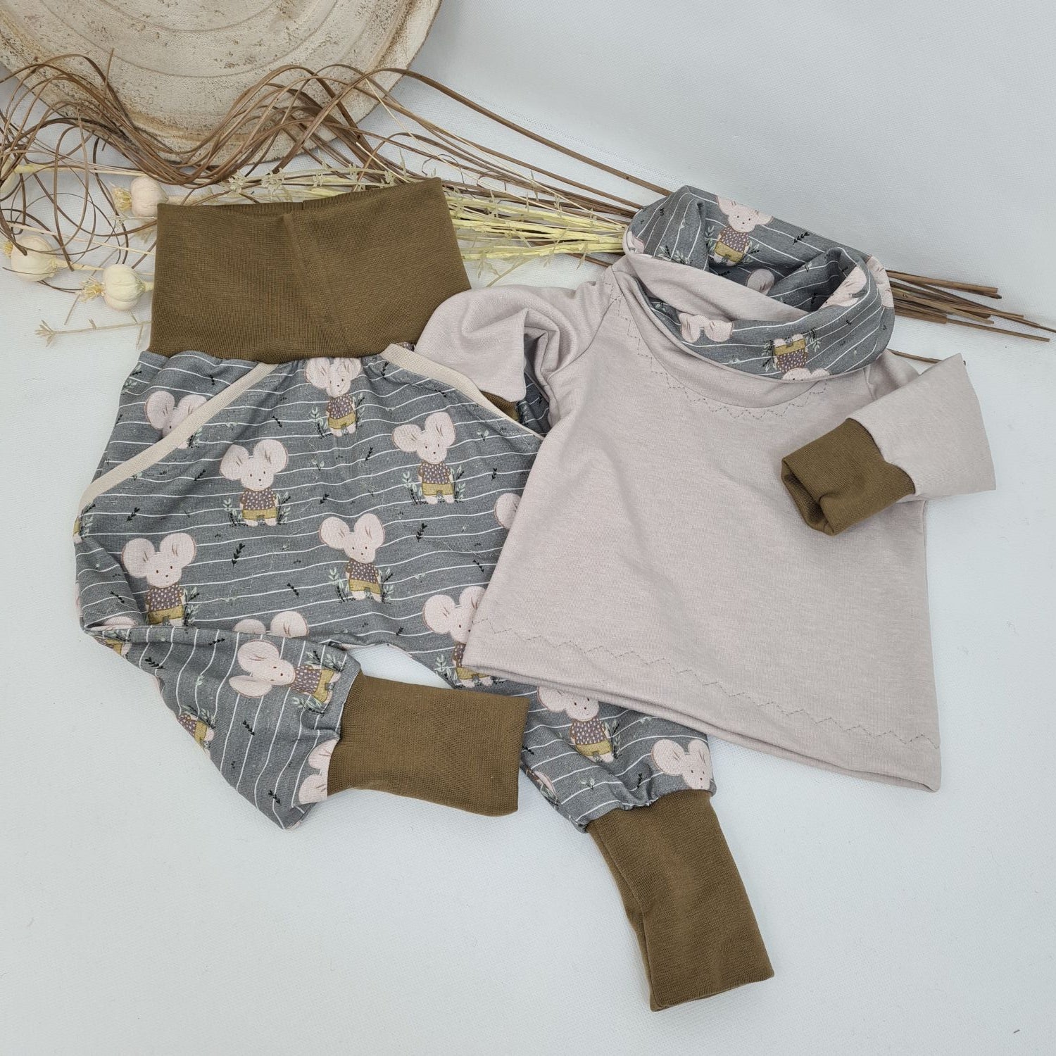 - Unsere handgefertigten Kleidungsstücke bestehen aus hochwertigen, schadstoffgeprüften Materialien, die für empfindliche Baby- und Kinderhaut geeignet sind.