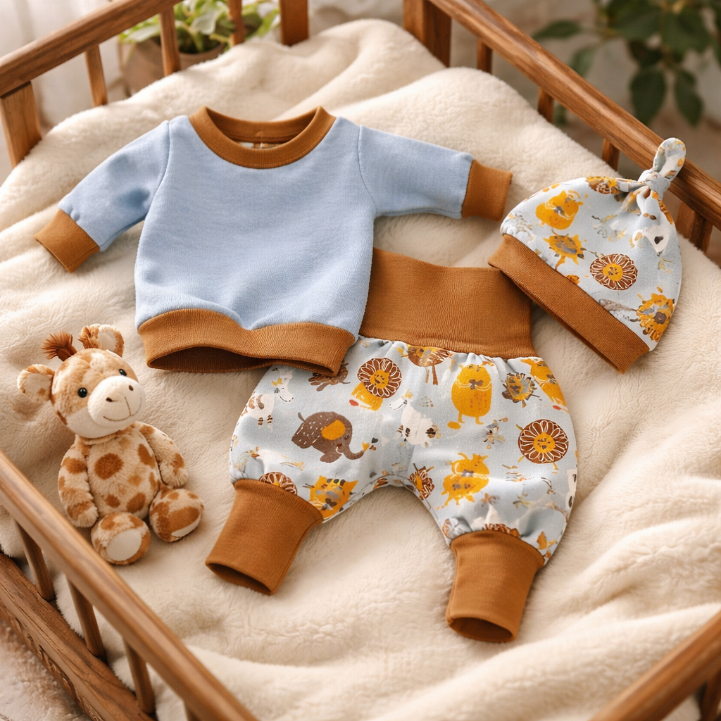 - Unsere handgefertigten Kleidungsstücke bestehen aus hochwertigen, schadstoffgeprüften Materialien, die für empfindliche Baby- und Kinderhaut geeignet sind.