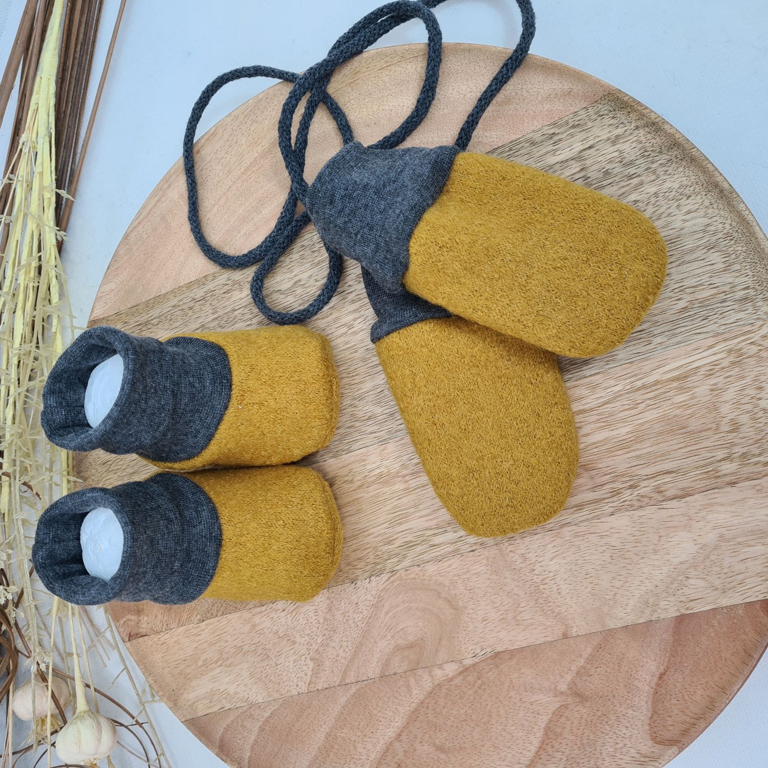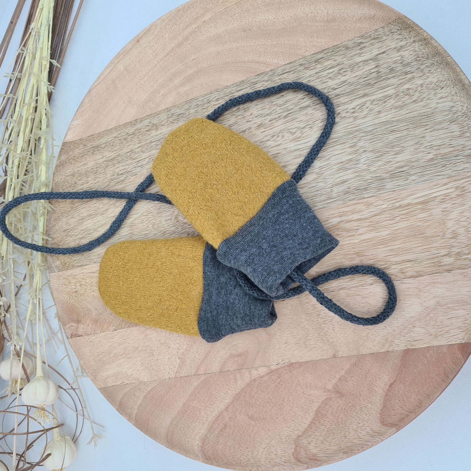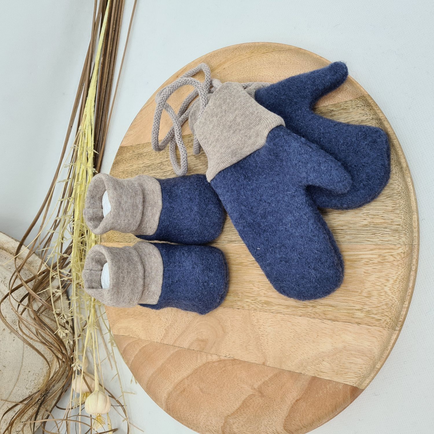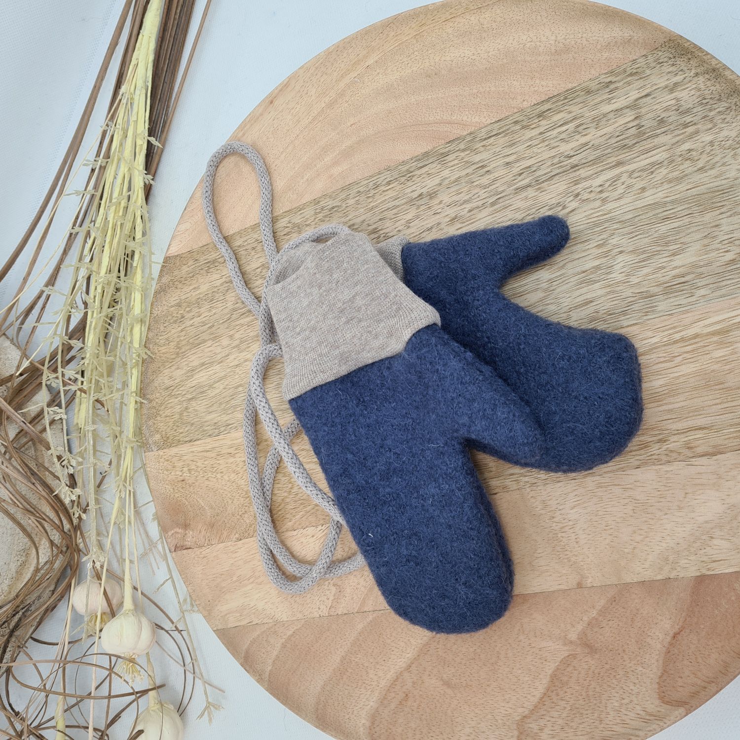 Diese Wollwalk Handschuhe sind der perfekte Begleiter für kalte Tage. Dank des praktischen Bands bleiben die Handschuhe immer griffbereit, und das warme Wollwalk-Material sorgt dafür, dass kleine Hände immer gut geschützt sind – egal ob als Fäustling oder mit Daumen.