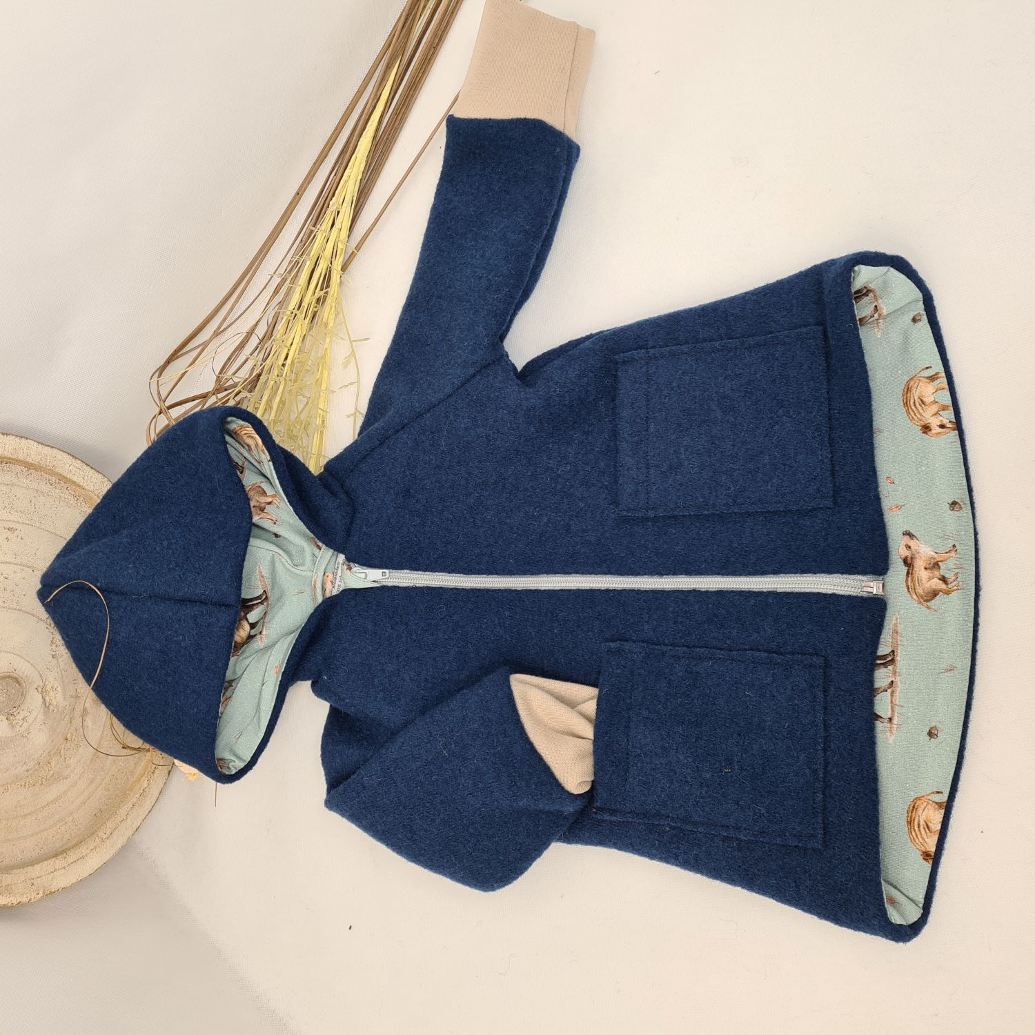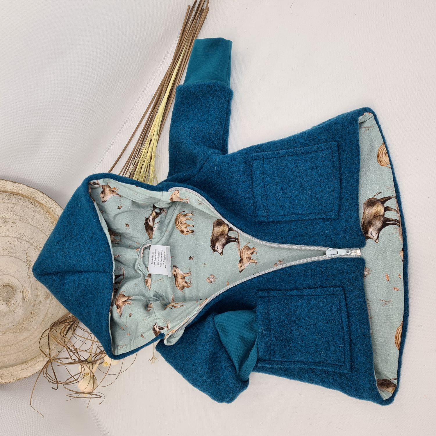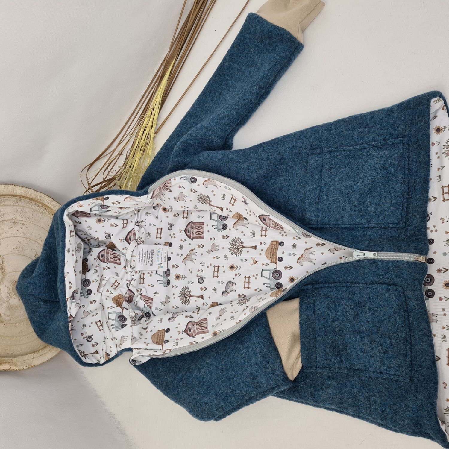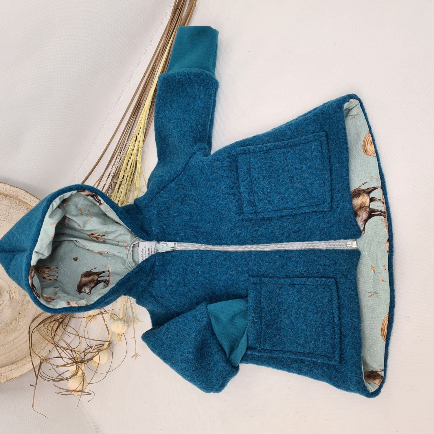 - Außenmaterial: 100 % Schurwolle (Wollwalk) – atmungsaktiv, temperaturregulierend & wärmend