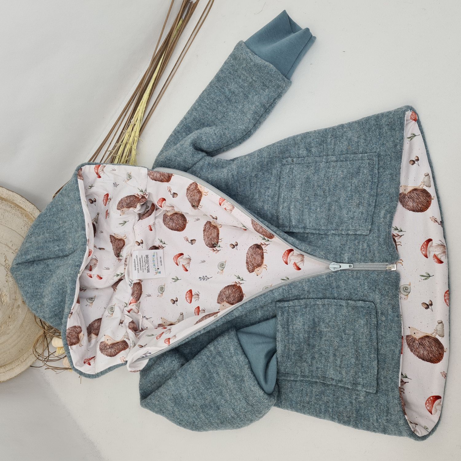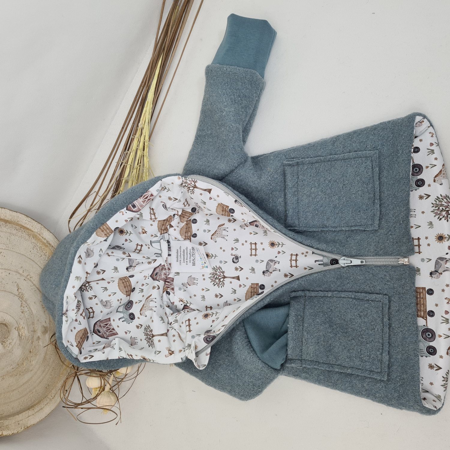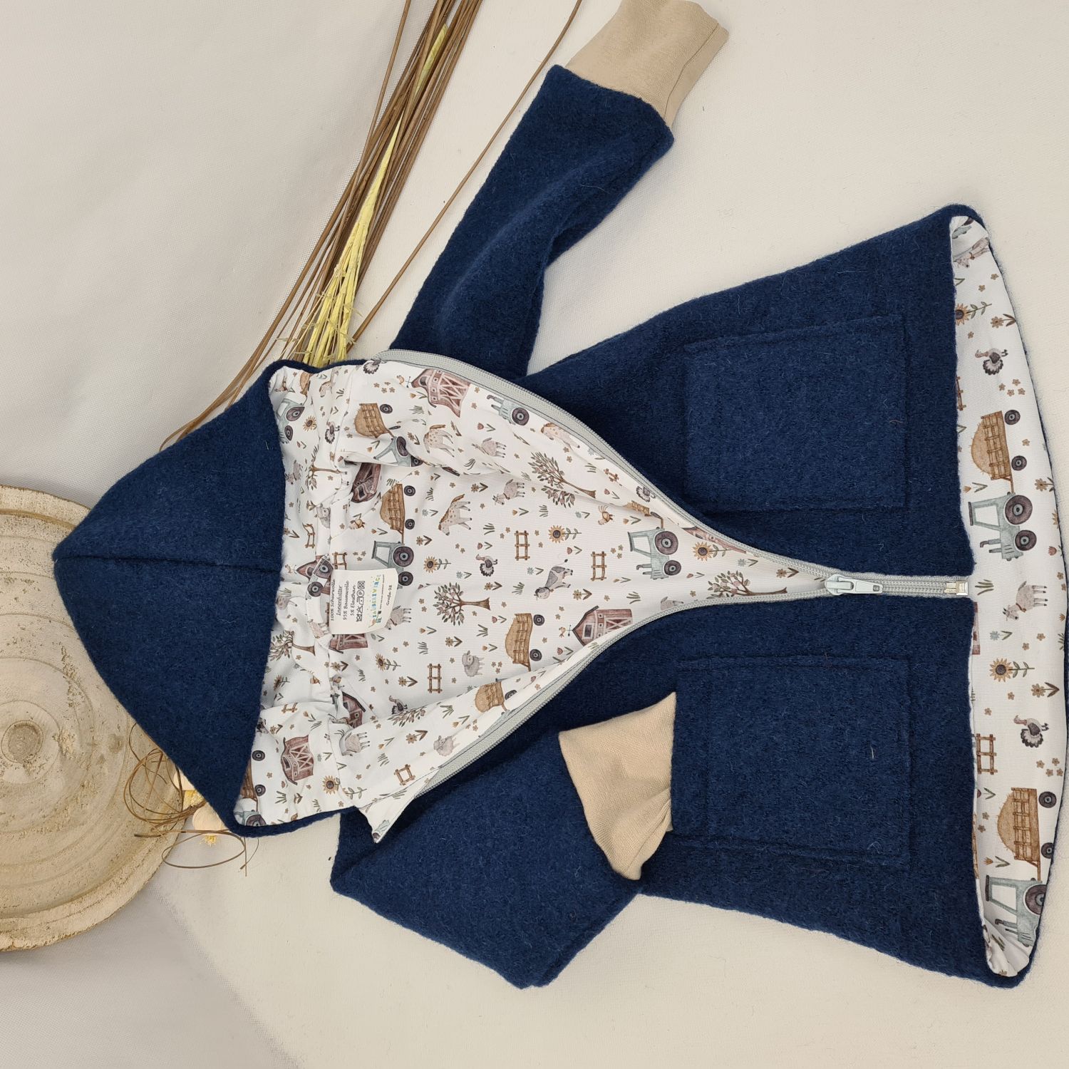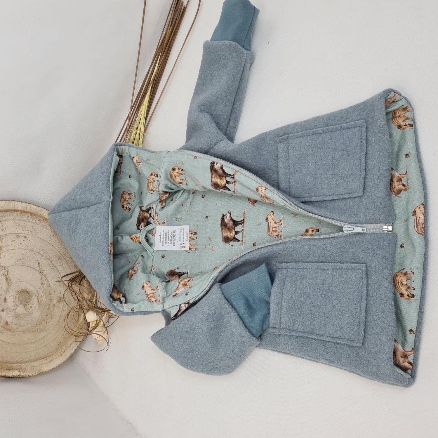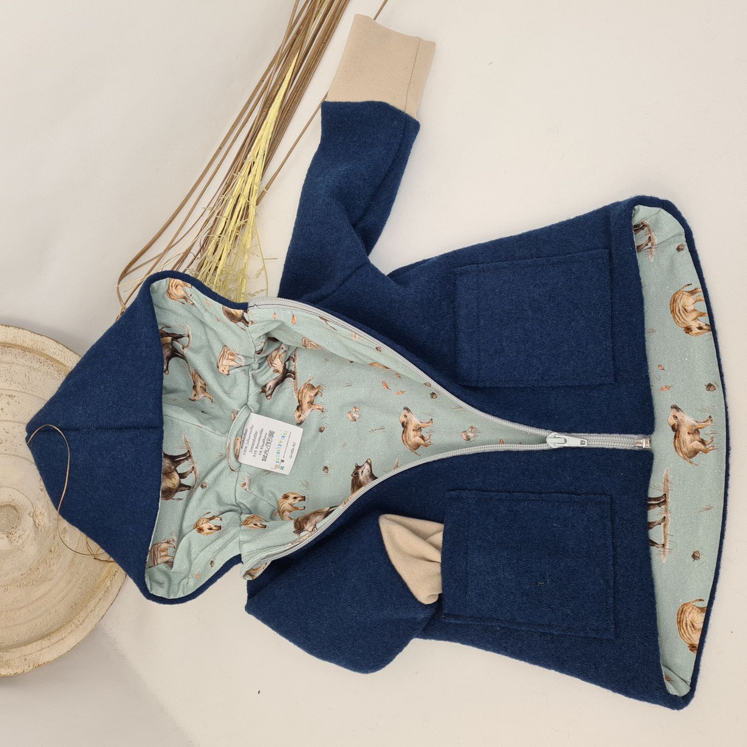 - Außenmaterial: 100 % Schurwolle (Wollwalk) – atmungsaktiv, temperaturregulierend & wärmend